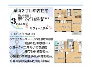 ◇ファミリーマートいわき泉町本谷店まで徒歩約10分(約800m) ◇ヨークベニマルいわき泉店まで車で約5分(約2300m) ◇泉北小学校まで徒歩約47分(約3700m) ◇泉中学校まで徒歩約44分(約3500m) |