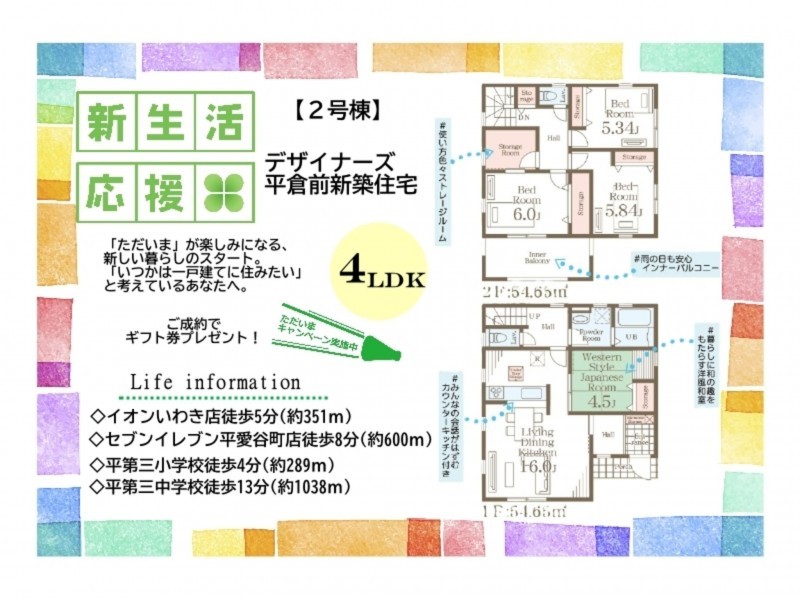◇イオンいわき店まで徒歩約5分(約351m) ◇セブンイレブン平愛谷町店まで徒歩約8分(約600m) ◇平第三小学校まで徒歩約4分(約289m) ◇平第三中学校まで徒歩約13分(約1038m) |