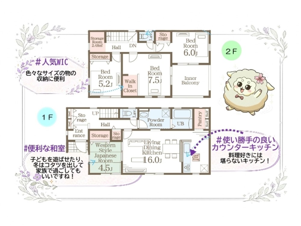 1階は約16帖のLDKに加え、4.5帖の和室スペースも確保。
