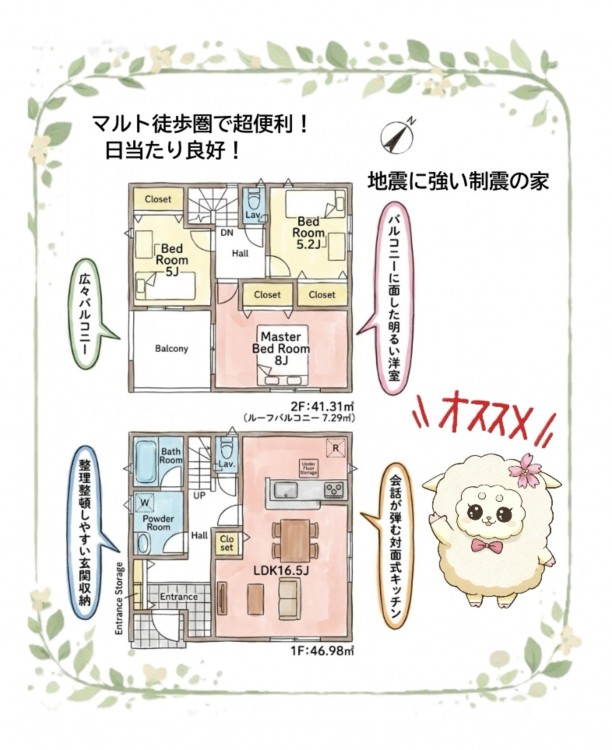 ✅主寝室8帖+広々バルコニーで、ホテルライクな寛ぎを 🏨✨